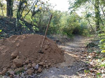 Nářadí do šemberské posilovny dodáme erární, pokud by se někomu vešlo do auta kolečko, může ho vzít s sebou. Hodí se i jemné hrábě na listí, případně normální ocelové hrábě na urovnání nově navezeného materiálu. Vyladili bychom první klopky, které už jsou malinko unavené a vylepšili sježděné houpáčky po první průjezd roklí.