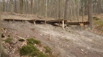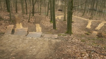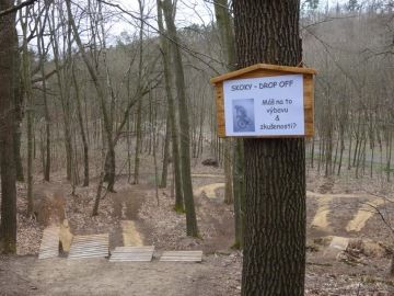 Pod Hláskou (modrým trailem) v poslední rokli před dojezdem je vybudováno pět "nakopávaček" v podobě přejezdové lavice se sklonem 31° a čtyř dřevěných dropíků s výškou od 20 do 84 cm. Navíc některé odjezdové lajny jsou zpestřeny terénními nerovnostmi a kořeny nebo pařezy! Proto apelujeme před vašimi prvosjezdy sesednout a v klidu prohlédnout a pro volbu správné stopy nejen odpalu ale i bezpečného dojezdu uvážit vliv komprese a nerovností!